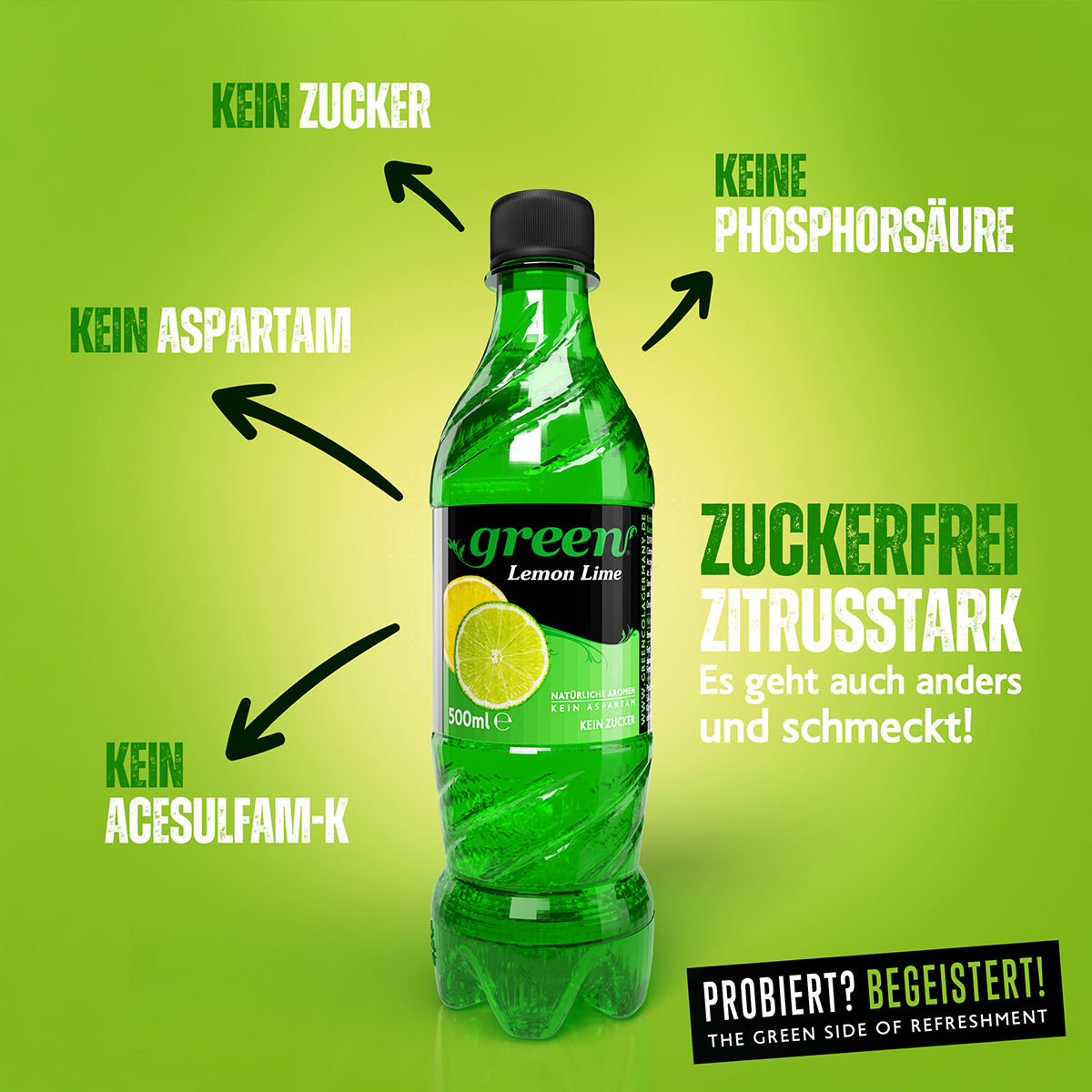 Kohlensäurehaltiges Erfrischungsgetränk ohne Kalorien, mit Süßungsmitteln. Ohne Zucker.